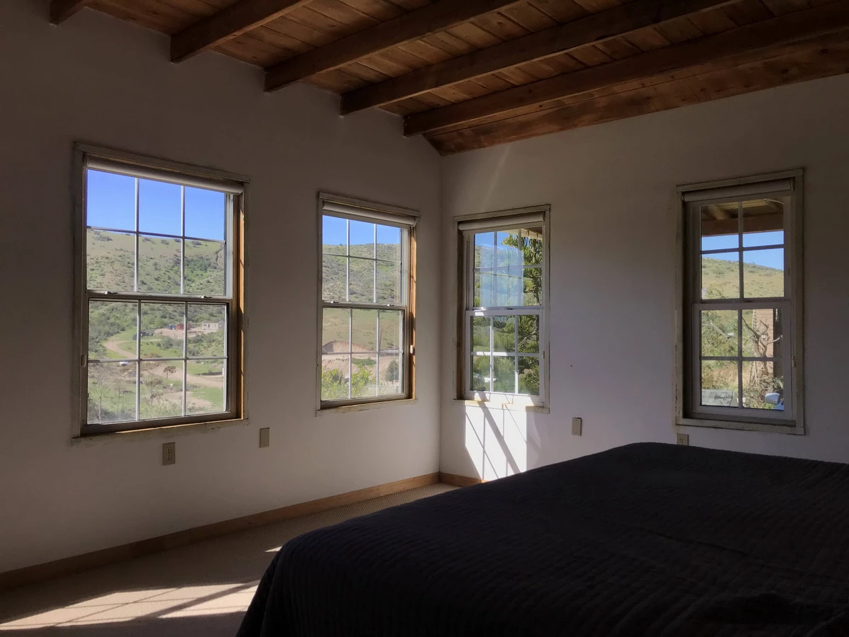 Es una bonita casa con su porche techado, cuenta con su cocina, comedor, sala, baño completo y dos recamaras, la iluminacion natural de la casa es gracias a sus amplias ventanas, 13 en total, con vista panoramica a la montaña y jardines, en el patio de atras hay bancas, mesa, quemador de leña y un asador para las parrilladas.